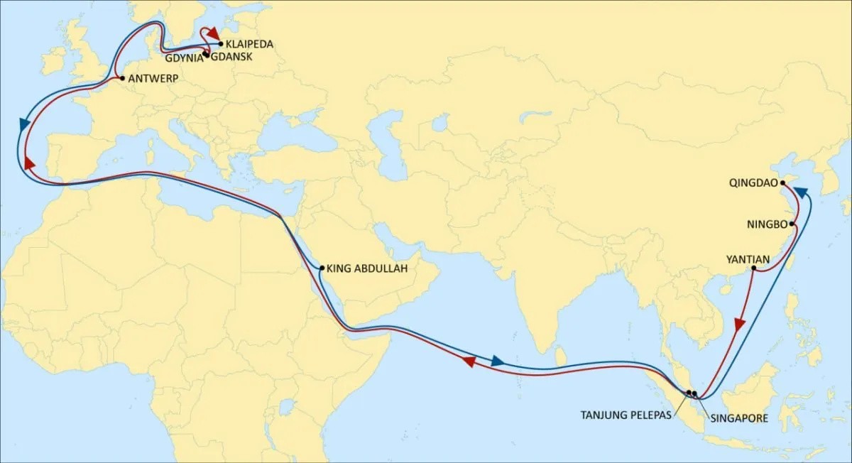 Tato trasa je ideální pro časově citlivé zboží, jako je módní oděvy, elektronické komponenty a podléhající položky určené pro jižní Evropu ., také podporuje náklad vyžadující překládku do střední Evropy nebo severní Afriky, využívá přístavy jako Piraeus pro efektivní vnitrozemské rozdělení .